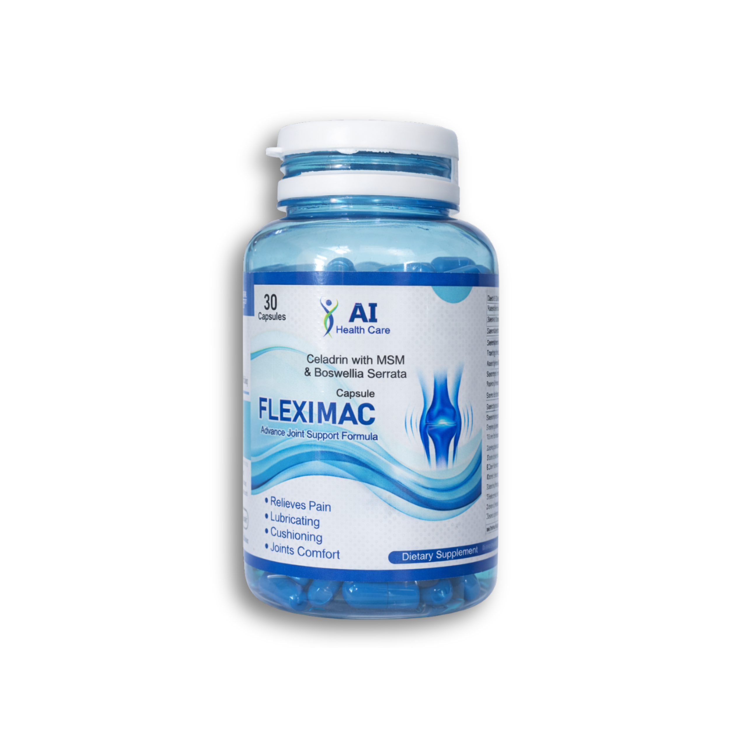 FLEXIMAC is a premium joint care supplement formulated to support flexibility, mobility, and overall joint comfort. Enriched with Celadrin, MSM, and Boswellia Serrata, this powerful combination works synergistically to help reduce joint discomfort, improve lubrication, and enhance cushioning for smoother movement.
